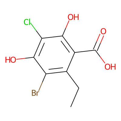 CCc1c(Br)c(O)c(Cl)c(O)c1C(=O)O| HBA: | 4 | RingCount: | 1 |