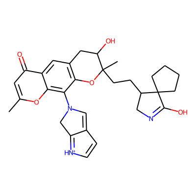 Cc1cc(=O)c2cc3c(c(N4C=C5C=C[NH+]=C5C4)c2o1)OC(C)(CCC1CN=C(O)C12CCCC2)C(O)C3| HBA: | 8 | RingCount: | 7 |