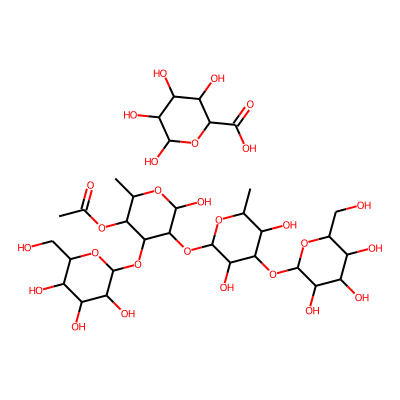 CC(=O)OC1C(C)OC(O)C(OC2OC(C)C(O)C(OC3OC(CO)C(O)C(O)C3O)C2O)C1OC1OC(CO)C(O)C(O)C1O.O=C(O)C1OC(O)C(O)C(O)C1O