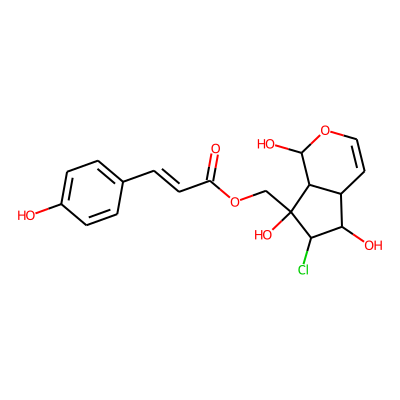 O=C(C=Cc1ccc(O)cc1)OCC1(O)C(Cl)C(O)C2C=COC(O)C21Sugarmoiety: