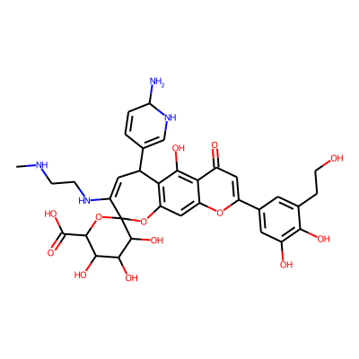 CNCCNC1=CC(C2=CNC(N)C=C2)c2c(cc3oc(-c4cc(O)c(O)c(CCO)c4)cc(=O)c3c2O)OC12OC(C(=O)O)C(O)C(O)C2O| HBA: | 17 | RingCount: | 6 |