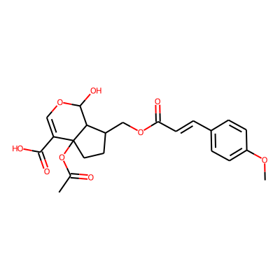 COc1ccc(C=CC(=O)OCC2CCC3(OC(C)=O)C(C(=O)O)=COC(O)C23)cc1| HBA: | 9 | RingCount: | 3 |