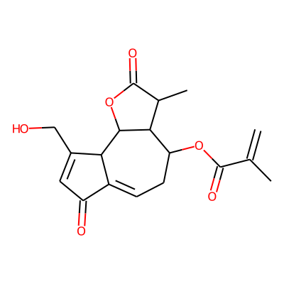 C=C(C)C(=O)OC1CC=C2C(=O)C=C(CO)C2C2OC(=O)C(C)C12| HBA: | 6 | RingCount: | 3 |