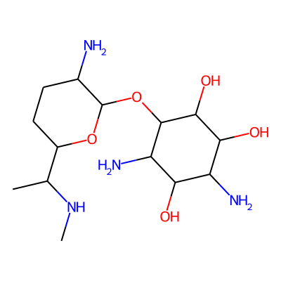 CNC(C)C1CCC(N)C(OC2C(N)C(O)C(N)C(O)C2O)O1| HBA: | 9 | RingCount: | 2 |