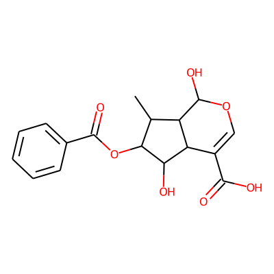 CC1C(OC(=O)c2ccccc2)C(O)C2C(C(=O)O)=COC(O)C12| HBA: | 7 | RingCount: | 3 |
