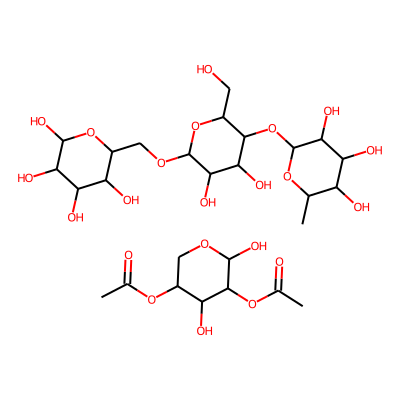 CC(=O)OC1COC(O)C(OC(C)=O)C1O.CC1OC(OC2C(CO)OC(OCC3OC(O)C(O)C(O)C3O)C(O)C2O)C(O)C(O)C1O