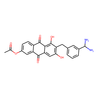 CC(=O)Oc1ccc2c(c1)C(=O)c1cc(O)c(Cc3cccc(C(N)N)c3)c(O)c1C2=O| HBA: | 8 | RingCount: | 4 |