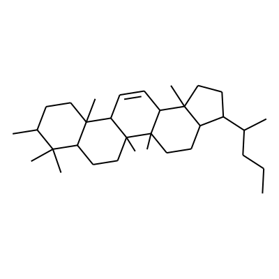 CCCC(C)C1CCC2(C)C1CCC1(C)C2C=CC2C3(C)CCC(C)C(C)(C)C3CCC21C| HBA: | 0 | RingCount: | 5 |