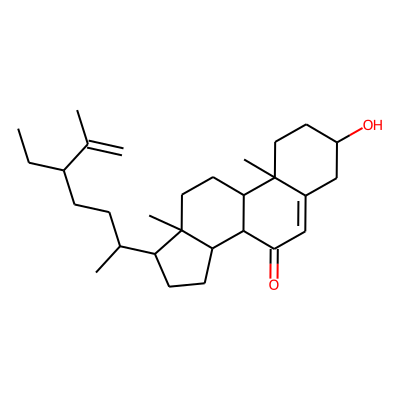 C=C(C)C(CC)CCC(C)C1CCC2C3C(=O)C=C4CC(O)CCC4(C)C3CCC12C| HBA: | 2 | RingCount: | 4 |