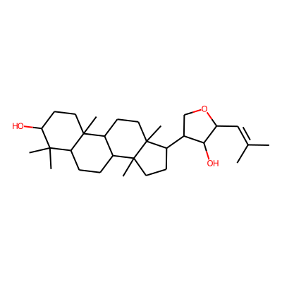 CC(C)=CC1OCC(C2CCC3(C)C4CCC5C(C)(C)C(O)CCC5(C)C4CCC23C)C1O| HBA: | 3 | RingCount: | 5 |