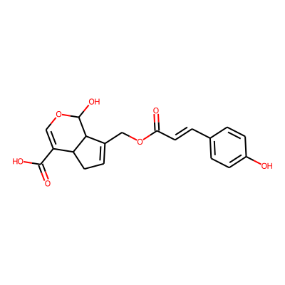 O=C(C=Cc1ccc(O)cc1)OCC1=CCC2C(C(=O)O)=COC(O)C12| HBA: | 7 | RingCount: | 3 |