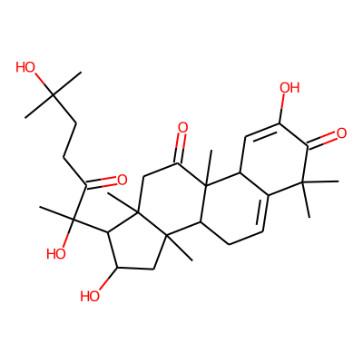 CC(C)(O)CCC(=O)C(C)(O)C1C(O)CC2(C)C3CC=C4C(C=C(O)C(=O)C4(C)C)C3(C)C(=O)CC12C| HBA: | 7 | RingCount: | 4 |