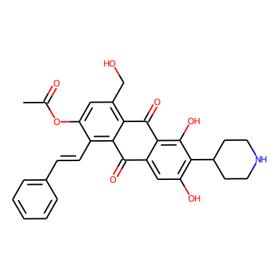 5-hydroxy-4-(hydroxymethyl)-9,10-dioxo-1-(2-phenylethenyl)-6-(piperidin-4-yl)-7-[(3,4,4,5-tetrahydroxy-6-methyloxan-2-yl)oxy]-9,10-dihydroanthracen-2-yl acetateFormula: