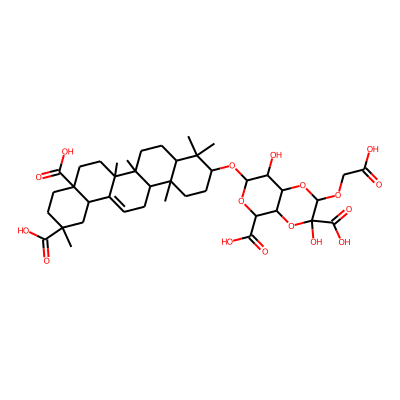 CC1(C(=O)O)CCC2(C(=O)O)CCC3(C)C(=CCC4C5(C)CCC(OC6OC(C(=O)O)C7OC(O)(C(=O)O)C(OCC(=O)O)OC7C6O)C(C)(C)C5CCC43C)C2C1| HBA: | 17 | RingCount: | 7 |