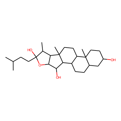 CC(C)CCC1(O)OC2C(O)C3C4CCC5CC(O)CCC5(C)C4CCC3(C)C2C1C| HBA: | 4 | RingCount: | 5 |