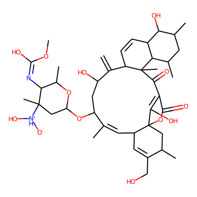 C=C1C(O)CC(OC2CC(C)([NH+]([O-])O)C(N=C(O)OC)C(C)O2)C(C)=CC2C=C(CO)C(C)CC23OC(=O)C(=C3O)C(=O)C2(C)C1C=CC1C(O)C(C)CC(C)C12| HBA: | 15 | RingCount: | 6 |