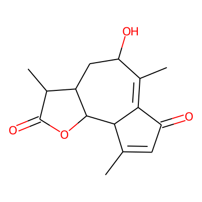 CC1=CC(=O)C2=C(C)C(O)CC3C(C)C(=O)OC3C12| HBA: | 4 | RingCount: | 3 |