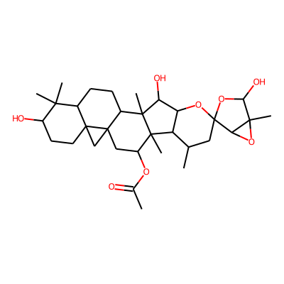 CC(=O)OC1CC23CC24CCC(O)C(C)(C)C4CCC3C2(C)C(O)C3OC4(CC(C)C3C12C)OC(O)C1(C)OC41| HBA: | 8 | RingCount: | 8 |